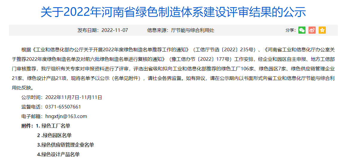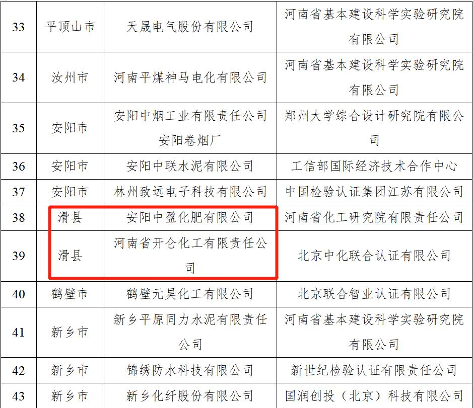 11月7日,河南省工业和信息化厅2022年河南省绿色制造体系建设评审结果揭晓,滑县先进制造业开发区安阳中盈化肥有限公司和河南省开仑化工有限责任公司荣获2022年度省级“绿色工厂”称号。这是开发区深入贯彻绿色发展理念的缩影,也是企业转型升级、高质量发展取得的阶段性成效。
