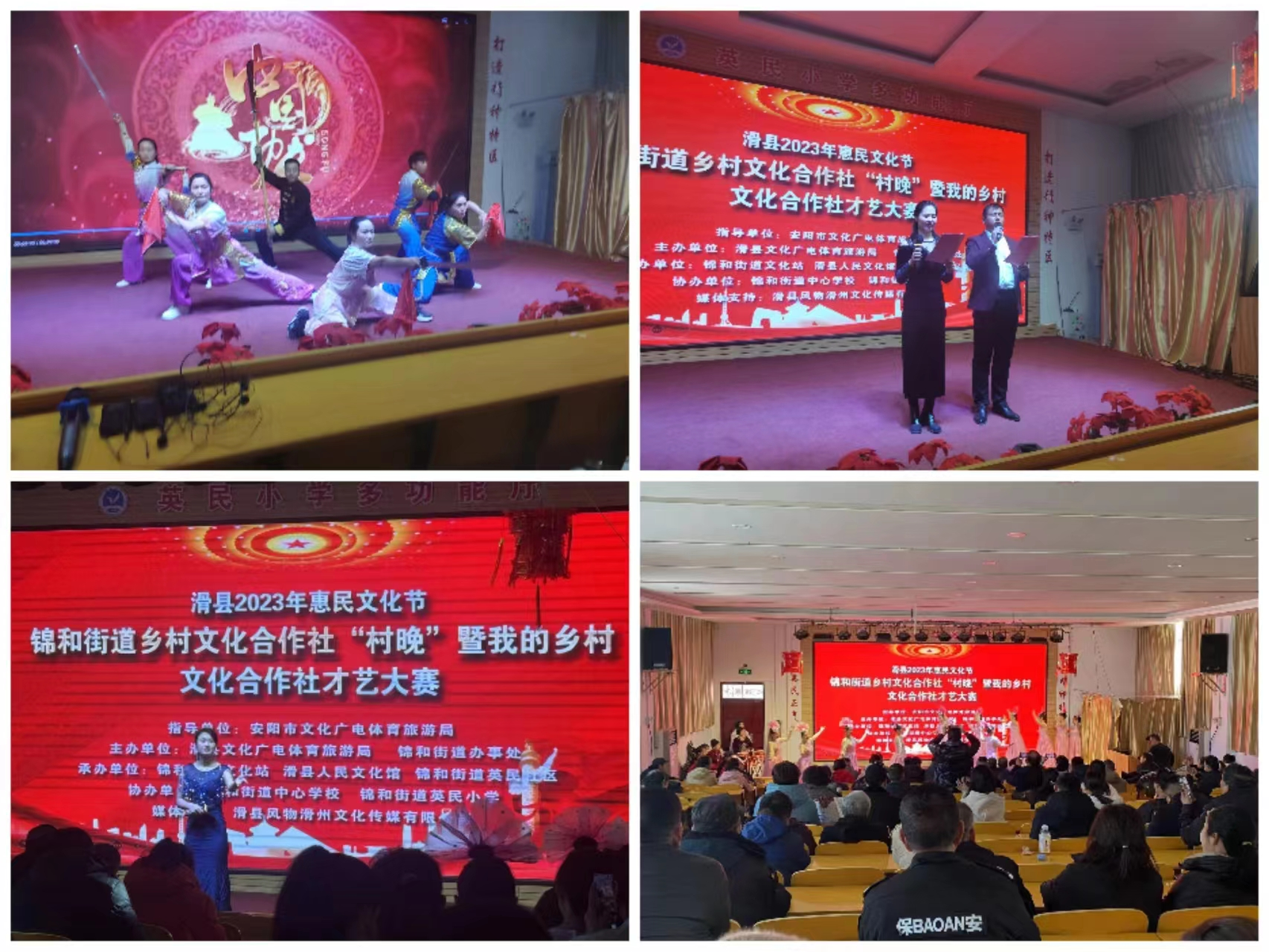 锦和街道文化站站长王利兵、锦和街道第二管理区区长李霄鹏、锦和街道中心学校校长王封、英民社区党总支书记王臣选等领导同志,及街道各社区两委干部、业委会成员、英民小学部分教职工观看了演出。