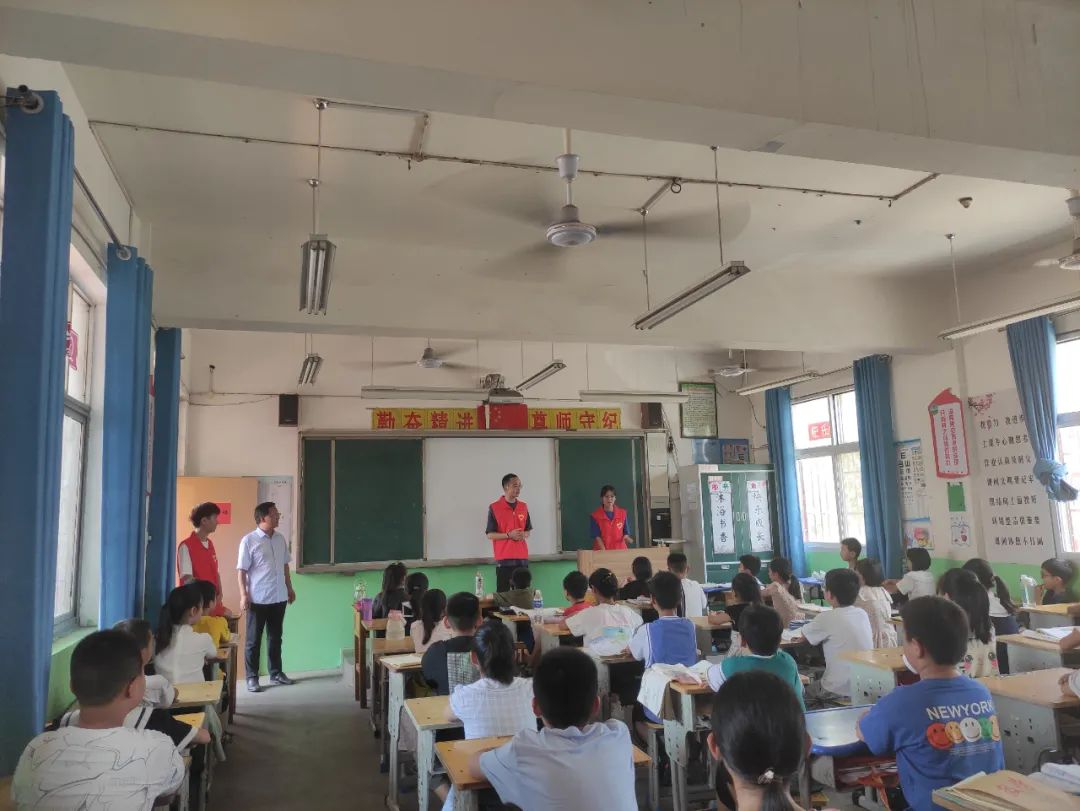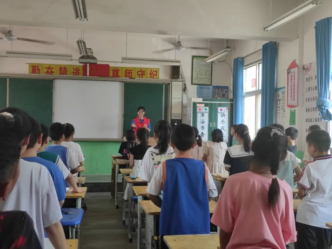 在瓦岗寨乡第一中心小学教室里面,志愿者们通过开展讲故事、猜字谜、做游戏等一系列益得益智、文明健康、深受未成年人喜爱的文明实践活动,帮助未成年人度过一个多姿多彩的暑假。借此机会,志愿者们开展了“未成年人防溺亡宣传”活动,向同学们介绍一些简单的防溺亡知识:不私自下水游玩,遇到别人有危险时应该怎么办等,提高同学们暑期安全意识。